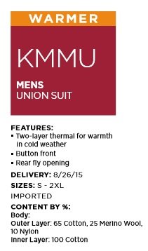 Studio : Hanesbrands - Duofold Publisher : Hanesbrands - Duofold Binding : Apparel Product Description Duofold originals created the base layer category with the first bi-ply thermals soft cotton against the skin and paired with the natural warmth of merino wool for superior thermal insulation, perfect for a wide range of low-impact activities 0