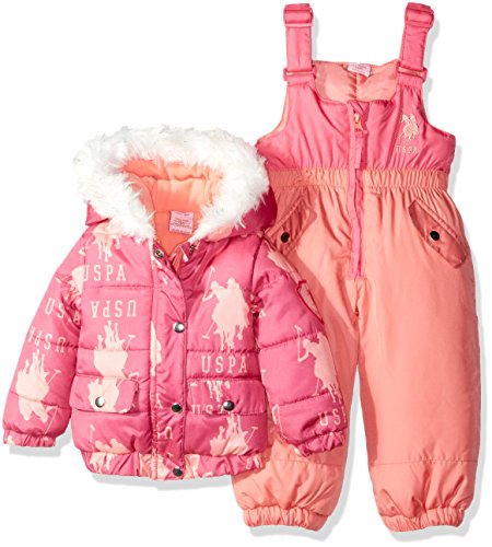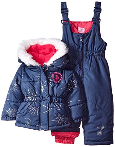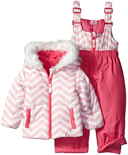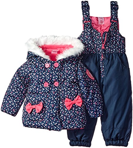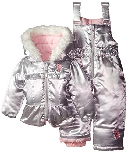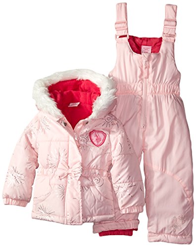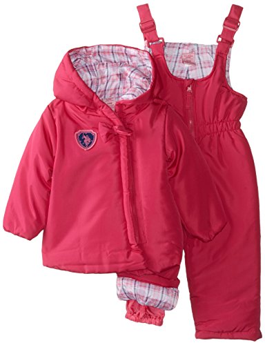 Logo print bubble pearlized care snow suit is polyester filled and polar fleece lined