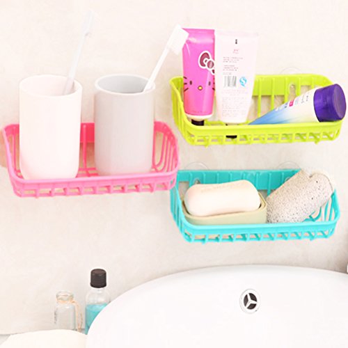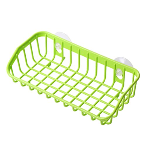 OUNONA draining rack sink caddy Storage Rack Multi-functional Plastic Double Sucker Wall Hanging for Kitchen Bathroom (Green)