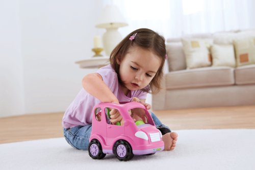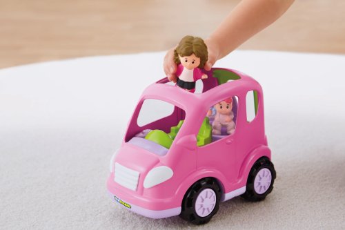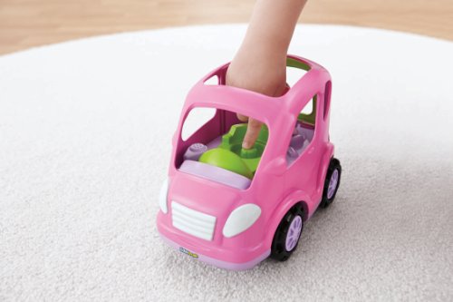 • Press down on mom in the driver's seat to hear fun sounds and a tune