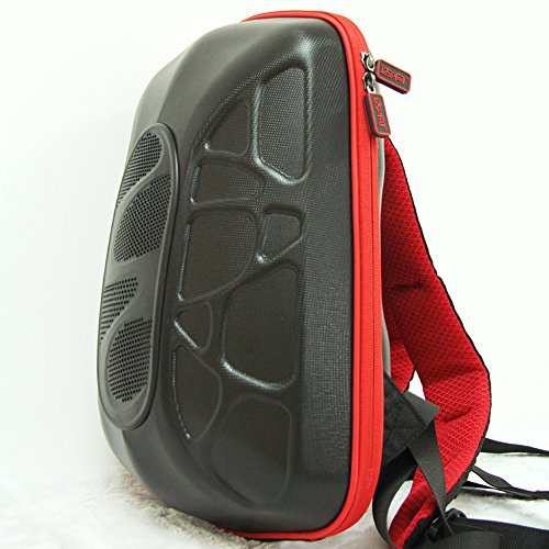 -. Feature : This backpack speaker comes with 2 built-in bass resonating stereo subwoofer and multi compartments, ideal for outdoor sports like cycling, hiking, mountain climbing, travel, etc. / High speed wireless bluetooth 2.1, Aux in and earphone support, perfectly compatible with iPhones, Androids, iPads, Tablets, MP3 players, etc. / Ergonomic red design in the back, features with 360 degree breathable material, relax your pain and massage the muscle. / Hard EVA material, waterproof, anti-shock and pressure resistant. / This mp3 boom box is supported by buit-in 5200mAH polymer battery, 8-12 hours long continuously playback time.