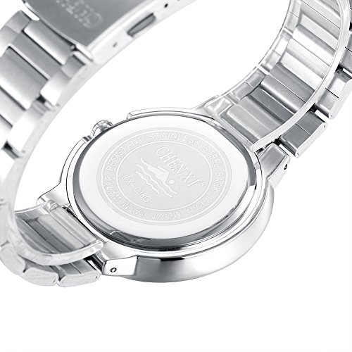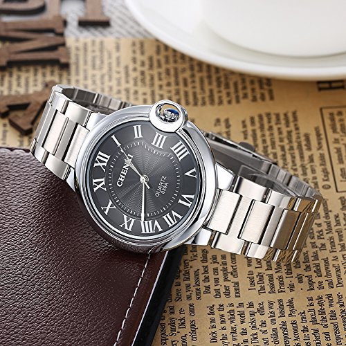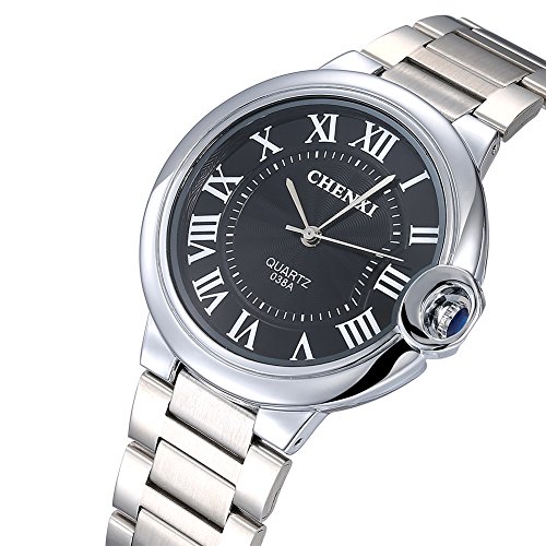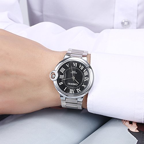 CHENXI Rockyu 감정 브랜드 남성 손목시계 캐주얼 wrist watch 맨즈 스위스 쿼츠 실버 스테인레스 밴드 일상 방수 블랙 사파이어 유리 [병행수입품]