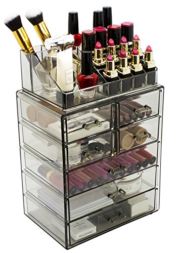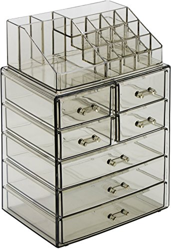 - DURABLE & LONG-LASTING — Made of acrylic (durable clear plastic) — Includes 4 large drawers, 2 small drawers, and 16 slot compartments — Drawers slide open smoothly and handles are easy to grip — Can be used alone or to complement any acrylic organizers sets by Sorbus — Makeup and Accessories are NOT included — (Beauty Note: The color is a combination of a smokey black with deep green undertones to give off that earthy vibe!) — Measures approximately 9.25” L x 6.25” W x 14.25” H
