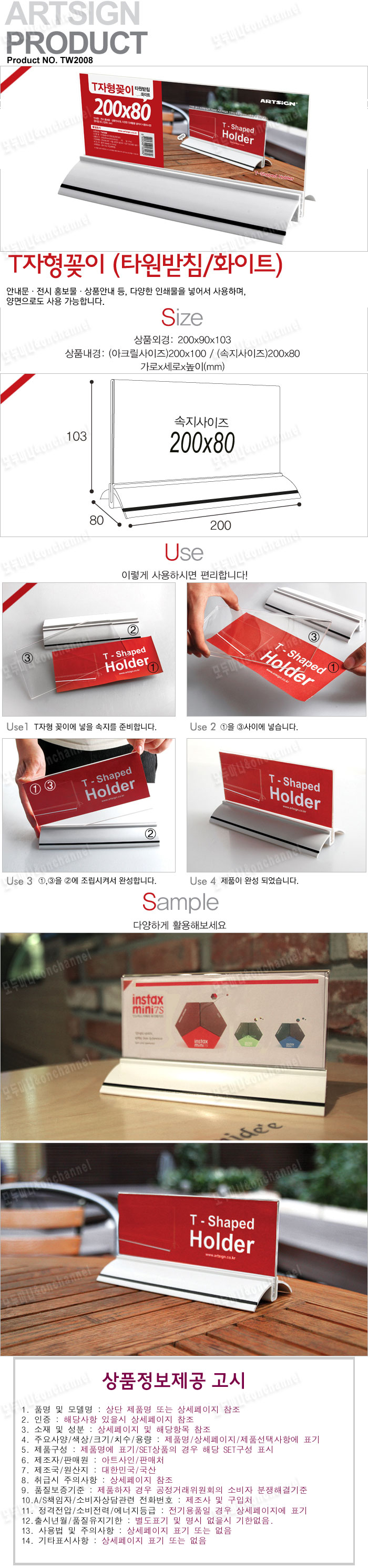 - 품명 및 모델명T자형꽂이(타원받침/흰색)(200x80mm)