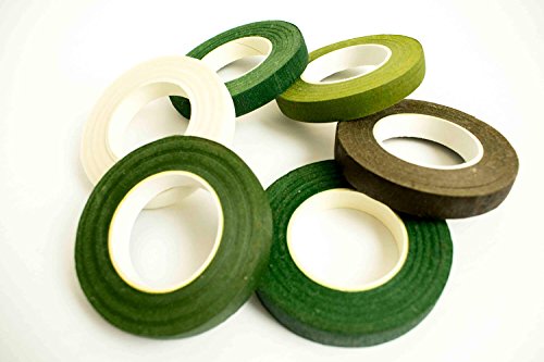 - YOUR FLOWER ARRANGING CRAFTS MADE COLORFUL WITH GREEN, BROWN, AND WHITE FLORAL TAPES. Floral tapes in brown, white and three shades of green will add a colorful finish to your branches, stems, and other floral jewelry. Be sure to slightly tug the stem wrap as you are using it to release its special glue and make it stick. The floral tape will only stick to itself, so make sure you overlap the floral tape as you twist the wire!