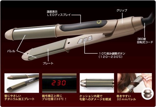 원본상품명: 【海外】アゲツヤ2WAY ヘアアイロン MAX230℃ プロフェッショナル NEWストレト&カルアイロン コテ (32mm)
