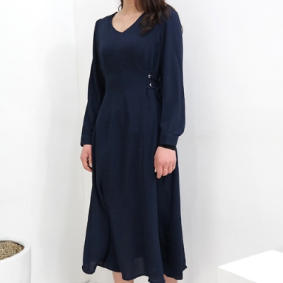 페미닌한 무드가 느껴지는 롱원피스예요. 심플한 디자인에 허리라인에 아일렛 스트링으로 포인트를 주어서 허리라인이 잘록해보이고 볼륨감이 느껴지는 상품이예요.