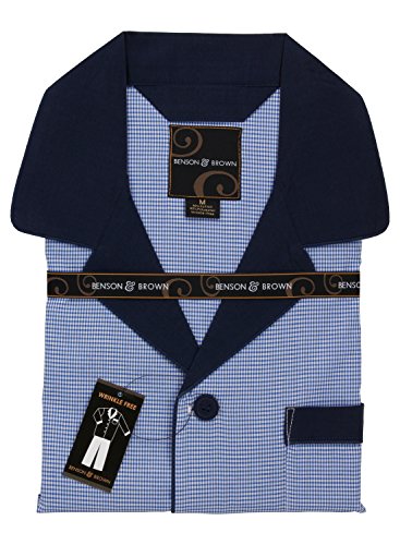 Binding : Apparel Product Description Description: The men Benson Brown's Woven Sleepwear sets are constructed with Strong thin light broadcloth fabric comfortable enough to sleep in, comes with solid edge for durability to wear around at home Pajama Features: ?Comfortable Thin Lightweight Pajama Set for Men. ?55% Cotton 45% Polyester . ? Machine Washable . ?Wrinkle free. Pajama Top ?Long sleeves and chest pocket. ? Styled with solid collar solid pocked for durability. ? 4 Button front closure. ?Roomy, comfortable shaped arm holes. Pajama Bottom ?Comfortable covered elastic waistband. ?Adjustable buttons for a perfect fit. ? Full wide cut for easy movement and maximum sleeping comfort. 0 |