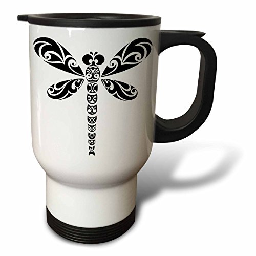 3drose Tribal Dragonfly Tattoo, Stylized Image of a Dragonfly, Stainless Steel Travel Mug, 14-Oz