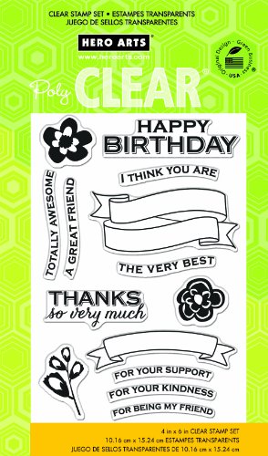 -. Binding : Misc. -. Brand : Hero Arts -. EAN : 0085700896726 -. Feature : Just peel, stick and stamp on paper! / See-through stamps ensure precise placement / Stamps like rubber for crisp, clear impressions / Each design is a Hero Arts original / Made with premium-quality photopolymer in the USA -. Label : Hero Arts -. Manufacturer : Hero Arts -. Model : CL736 -. MPN : CL736 -. PackageQuantity : 1 -. PartNumber : CL736 -. ProductGroup : Art and Craft Supply -. ProductTypeName : HOME -. Publisher : Hero Arts -. Studio : Hero Arts -. Title : Hero Arts For Your Kindness Stamp Set, Clear -. UPC : 085700896726