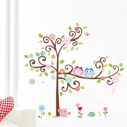 -. Title : 1 X Colorful Flower And Owls On The Tree Cartoon Wall Decor Sticker, Removable Decals For Kids Room Decoration, For Living Room by soferrior