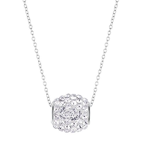 This sterling silver ball pendant is 11mm and features CRYSTALLIZED Swarovski elements. 18 inch sterling silver chain with spring ring clasp is included.