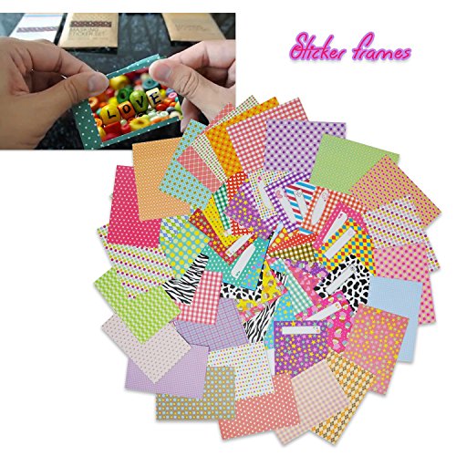STYLISH MINI FRAMES & STICKERS - Kit Includes 60 Assorted Colorful Mini Film Stickers for Mini Instant Photos that are easy to apply and are fun to have + 5 Colorful Frames specially designed for Mini Instant Photos + Colorful Hanging Frames with Hanging Clips and String.