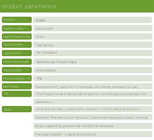 -. Binding : Baby Product -. Brand : Feskin -. Feature : Easy to intall and remove without leaving any damage and residue. / Very popular Cute gift for your kids or friends. / Moisture-proof and environmental-friendly Material: PVC, Diameter: 30cm; Weight: 50g / Fluorescent wall stickers, during the day and at night there will be two different colors. / Only fits for smooth mirror, glass and wall without powder. -. IsAdultProduct : 0 -. Label : Feskin -. Manufacturer : Feskin -. PackageQuantity : 1 -. ProductGroup : Baby Product -. ProductTypeName : BABY_PRODUCT -. Publisher : Feskin -. Studio : Feskin -. Title : Creative Luminous Moon Mouse Skin Wall Sticker Decorative Glow in the Dark, Decor Removable Art Mural Baby Nursery Room