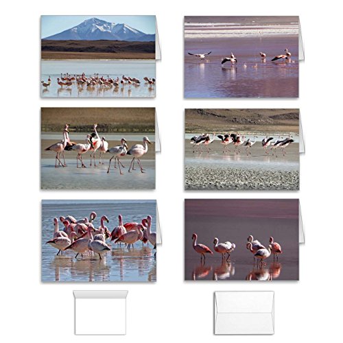 Twelve Pink Flamingo Bird Note Cards (2 of each photo): Gorgeous Flamingos from Bolivia, South America on red lagoons and ice. Set of 12 (6 Assorted Designs) to use for Birthday, Thank You or All Occasion, Made in USA
