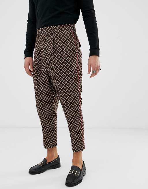 ASOS EDITION drop crotch tapered pants with geo in black