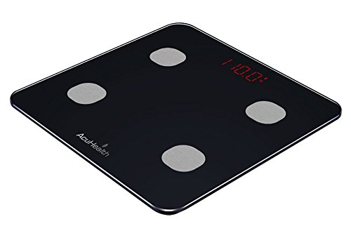 -. Feature : 10 PRECISION PHYSICAL HEALTH MEASUREMENTS - AcuHealth Smart Body Fat Scale monitors Body Weight, Body Water, Body Fat, BMI, BMR, Muscle Mass, Bone Mass, Visceral Fat and Physiological Age, great fitness monitor for healthy weight loss tracking. / BLUETOOTH 4.0 CONNECTIVITY - Compatible with iOS and Android smart phone Mobile Devices - Stores and displays body measurement histories for up to 10 different users with graphical diagram. Support Android 4.3 and IOS 6.1 and up. / INSTANT SETUP - Download the App by scanning QR code or visit the App store, connect to the "AcuHealth" app wirelessly to further track an assortment of other body indexes and store all readings. / MASSIVE 10 USERS TRACKING MANAGEMENT - AcuHealth digital smart body fat scale tracks up to 10 users at a time that works flawlessly with AcuHealth App. Break down fat loss and fortify exercise routines with individualized graphs and charts. / HIGH QUALITY AND STYLISH DESIGN - More than a high-quality fat loss tracker or weight scale, it also boasts crystal clear 3.3" backlit LCD display. The elegant and artistic design is truly for dressing room, bathroom, kitchen and home decor. A great item for personal use or as a gift for friends and family members.