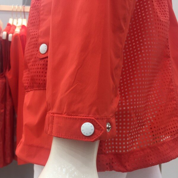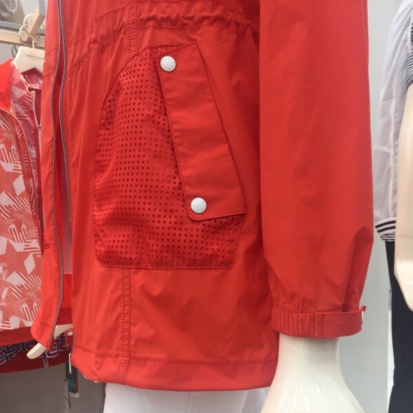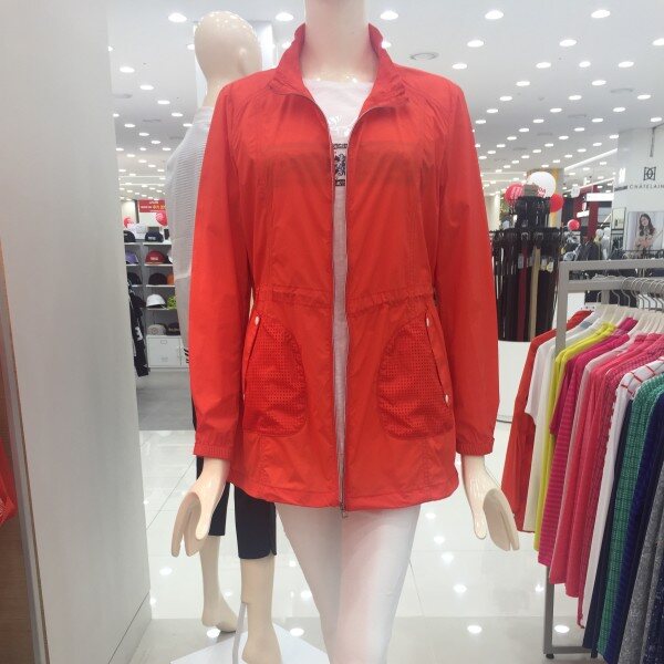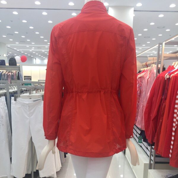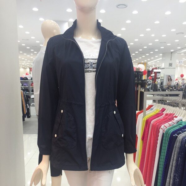 나일론 스판 원단을 사용한 여성스런 윙카라 스타일의 제품. 사각펀칭 믹스로 편안한 활동성을 가진 점퍼.