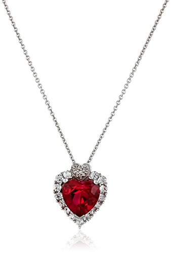 Sterling Silver, Created Ruby, Created White Sapphire, and Diamond Heart Pendant Necklace (.015 cttw, I-J Color, I2-I3 Clarity), 18"