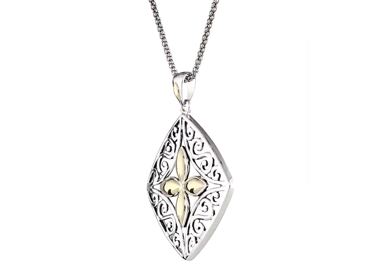 Sterling Silver Bali Inspired Swirl Marquise Pendant Necklace