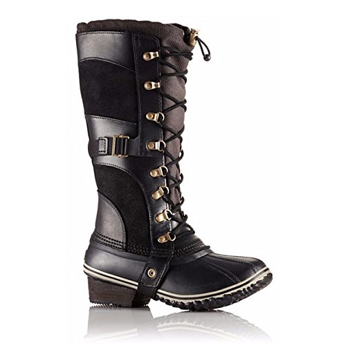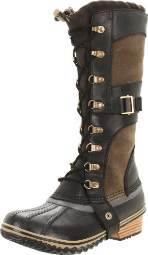 Lightweight Sorel boots with a fresh take on vintage style. Rubbed suede insets are outlined with curved leather panels, and tonal suede laces tie in the front. An elastic toggle band gathers the patterned canvas lining. Inset heel and lug sole.