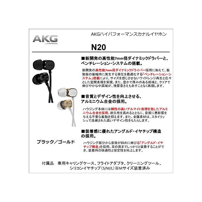 원본상품명: AKG N20 イヤホン カナル型 ブラック N20BLK 【正規品】