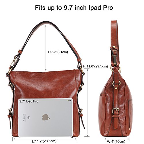 Product Description Overview This 2-way usage shoulder/hobo was made of calfskin leather from Italy. It matched with durable anti brass hardware. Main Feature : Top with zipper closure Front with cut-outs and spray color design Each side with buckle decoration 2-way usage strap Unfold strap hook to the right ring, it turns to be longer strap for cross body wear Fold strap in half and hook to the left ring, it turns to be shorter strap for shoulder/handbag wear Exterior: Rear zippered pocket for quick-access item Interior: Front 1 x cell phone pocket, 1 x wallet pocket Back 1 x zippered pocket Unable to load A4 magazine but still roomy to load daily things. Dimension : 11.6 L x 4 W x 11 H inch 29.5 L x 10W x 28.5 H cm Please note the size of purse before purchase. Net weight: 0.63 kg Colors Selection : Light Brown 0