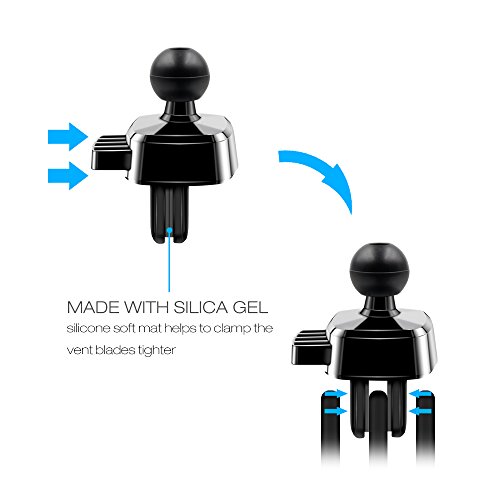 2 in 1 Design. Washable gel pad dashboard mount and air vent clip mount are both available for your preference and convenience. The gel pad sticks securely on most surfaces, yet is easily removable by pulling the suction pad without leaving any nasty mark on the surface