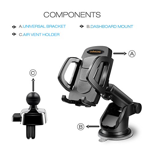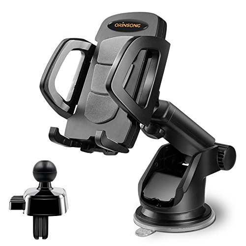 Cell Phone Holder for Car, Orinsong Car Phone Mount with Washable Gel Pad Dashboard Mount and Vent Clip Phone Holder 2 in 1, Adjustable Viewing Angle for iPhone, Galaxy, Google Nexus, Huawei and More