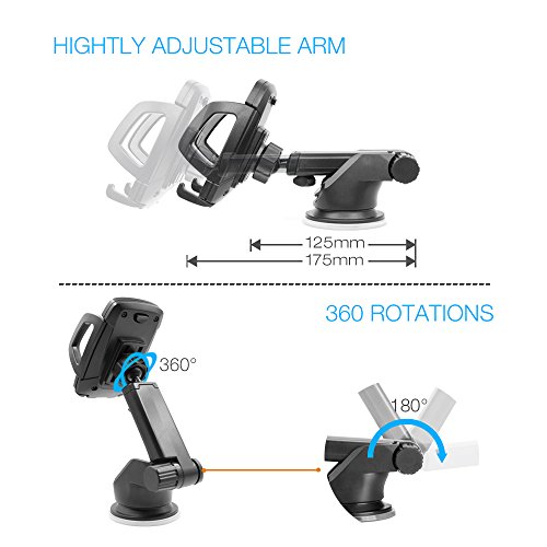 Wide Compatibility. Extendable and adjustable supporting arms for all sizes phones from 3.5 inch to 6.5 inch. There are sponge cushions inside the car phone holder for holding the phome more securely and is also shockproof for your phone