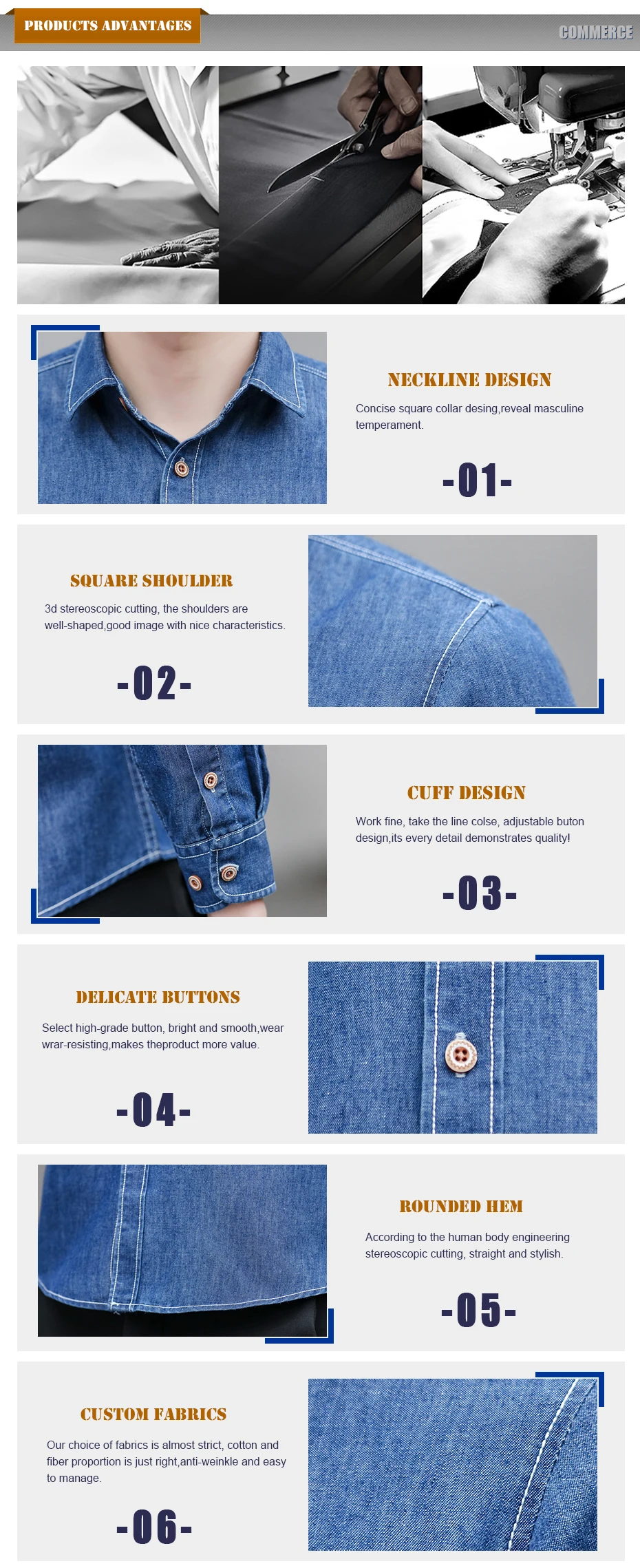 Feature 3:Denim Slim Fit Dress Shirts