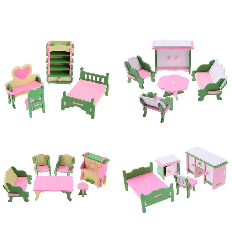 ミニ木製家具diy dollshouseセット教育ふりプレイおもちゃ