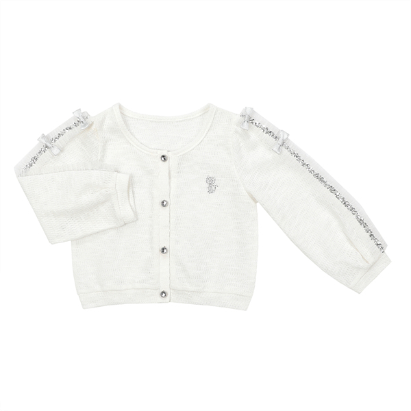 상품설명 시원한 니트같은 소재로 되어 있어 편안하게 코디 할 수 있는 화이트 가디건으로, 소매에 스팽글 테이프가 장식되어 있어 화려하고 귀여운 느낌으로 입을 수 있는 제품입니다. 여름에 에어컨 가동되는 실내에서 가볍게 입힐 수 있는 시원한 원단으로 제작된 가디건입니다.