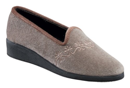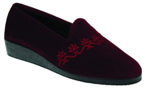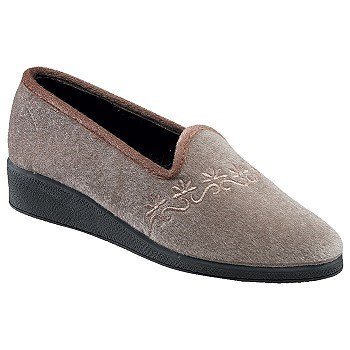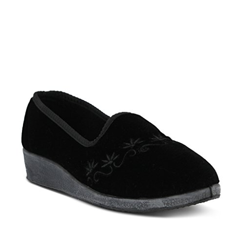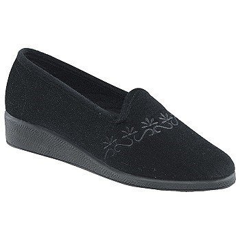 Product DescriptionEasy to slip-on velvet-like indoor/outdoor slipper loafer with embroidered floral detail.0