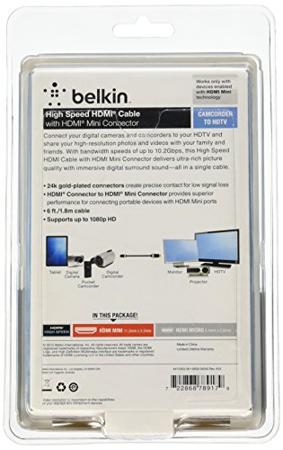 Belkin HDMI To Mini HDMI High Speed Cable (Supports HDMI-Enabled Devices with MINI HDMI port), HDMI 2.0 / 4K Compatible, 6 Feet