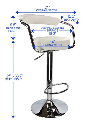 - Feature : 2 x White Bar Stool / Swivels 360 Degrees / Material: PU Leather / Height Adjustable - Stainless Steel Frame / Seat: 14" Diameter / Stool Handle: 20" Length / Height: 25" H Lowest Point /33.7" H Highest Point