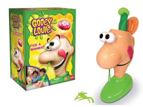 ReleaseDate : 2011-01-01 Studio : Goliath Games USA Publisher : Goliath Games USA Binding : Toy Product Description Pick a winner with Gooey Louie --who "nose" what you'll find when you dig in and try? But watch out . . . if you pick the wrong gooey from Louie his eyes will pop, he'll flip his lid, his head will pop open, and his brain will fly out! This kids game helps develop fine (and gross!) motor skills and hand-eye coordination. Who knew a booger game could be so much fun? For 2 or more players ages 4 and up. Includes Gooey Louie, 1 jumping brain, 1 base, 12 gooeys (boogers), 1 die, complete instructions. From the makers of Doggie Doo and Pop the Pig. 0