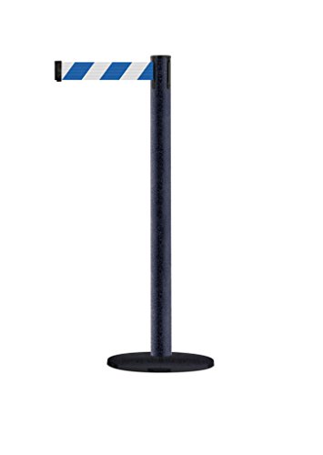 Tensabarrier 889U-89-89-STD-NO-D1X-C Black Wrinkle Post, 2" Wide, 7' 6" Length "Chevron Blue & White" Belt, 90" Length, Steel