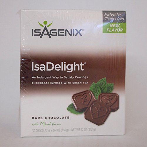 -. Binding : Health and Beauty -. Brand : Isagenix -. EAN : 0799692078984 -. Feature : Delectable chocolate with only 60 calories per chocolate square / Key nutrients to help nourish your body between meals / The perfect companion to help make Cleanse Days more enjoyable -. Label : Isagenix -. Manufacturer : Isagenix -. ProductGroup : Health and Beauty -. ProductTypeName : HEALTH_PERSONAL_CARE -. Publisher : Isagenix -. Studio : Isagenix -. Title : Isagenix IsaDelight Dark Chocolate with Mint flavor 30 Servings -. UPC : 799692078984