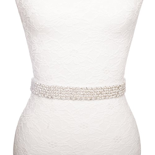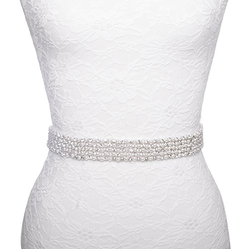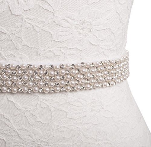 Redowa Rhinestone Pearl Beaded Wedding Dress Bridal Sash Belt Ivory