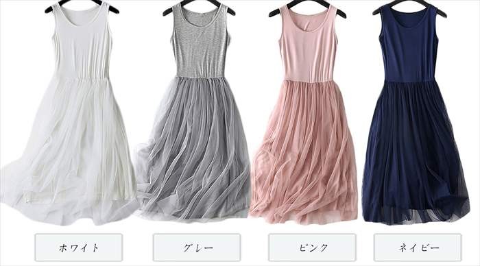 ・チュールスカートと切り替えになったシンプルなドッキングワンピース。・トップス部分とスカートのインナーは、しっとりとした柔らかなカット素材を使用しており、伸縮性も高く着心地は抜群♪・インナーとしても勿論使えるので、上から一枚短めのトップスを合わせるだけで、お洒落なレイヤードスタイルの完成。・ お好きなトップスと合わせるでけでお洒落コーデの完成なので忙しい時にもらくちん♪ ●サイズ展開 【フリー】着丈108cm バスト84cm※平均での採寸となりますので、多少の誤差が生じる場合がございます。ご了承くださいませ。●カラー展開 ピンク ホワイト グレー ネイビー●商品詳細 【素材】:ポリエステル・コットン・ナイロン 【透け感】:ややあり 【厚み】:やや薄め【裏地】:なし(スカート部分のみあり) 【シルエット】:ややぴったり 【伸縮性】:あり【付属品】:なし (コーディネート使用の衣類、アクセサリー等は付属しません)20代 30代 40代 50代 人気 レディースファッション 大きいサイズ