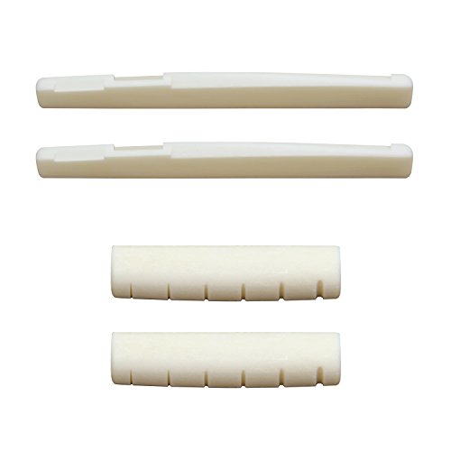 For a Left Handed Guitar - 2 Sets of 4pcs 6 String Acoustic Guitar Bone Bridge Saddle and Nut Made of Real Bone by Blisstime