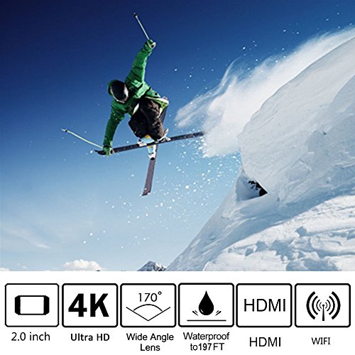ThiEYE i60e 4K Sport Action Camera 60M Waterproof Wifi 12MP FHD 2 Inch Screen 170 Degree Lens 360 Degree Rotating Buckle Helmet DV Camcorder, 2 Batteries Included