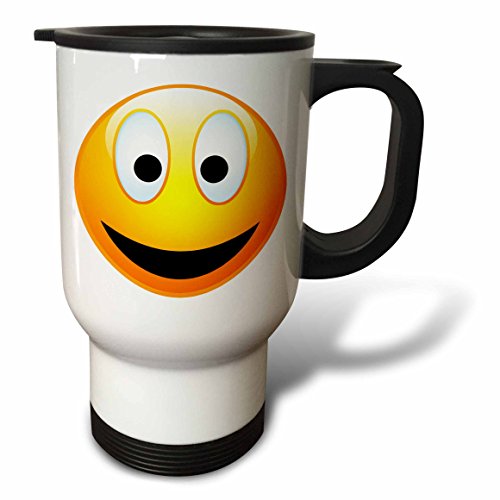 3dRose tm_19404_1 Smiley Face 2 a Yellow and Black Happy Face with a Big Smile and Glowing Nose Stainless Steel Travel Mug, 14-Ounce