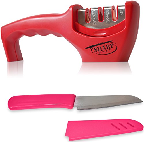 SharpChef Diamond Knife Sharpener System for Ceramic & Steel Blades (Includes Free Kitchen Knife)