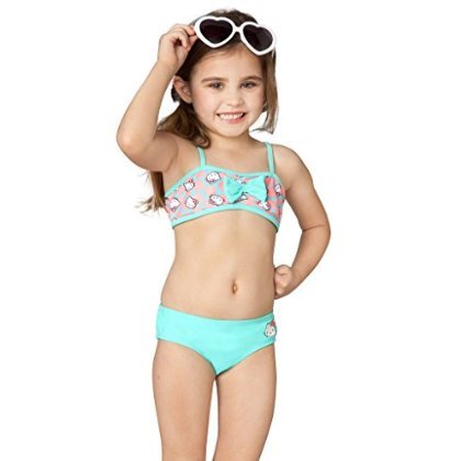 Your little water-bound fashionista will love splashing around in the Hello Kitty Girls' Sweet Dreams Bandeau Bow Two Piece Set.