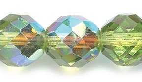 Preciosa Czech Fire 10mm Polished Glass Bead, Faceted Round, Olive Green Aurora Borealis, 60-Pack