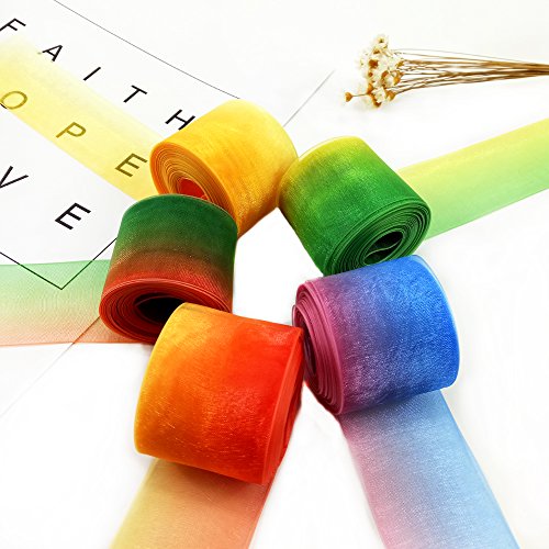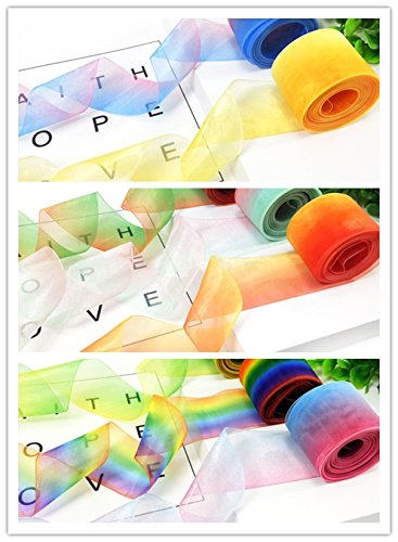 - Gradient Rainbow Series Shimmer Sheer Organza Ribbon: include 8 rolls