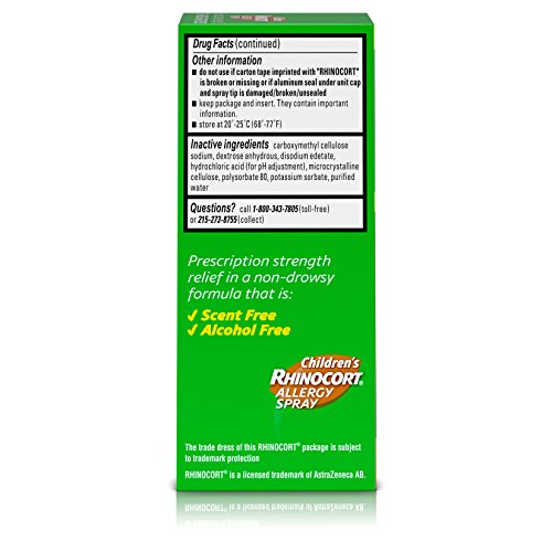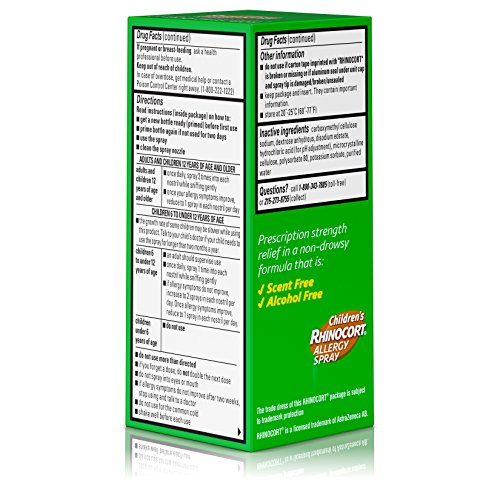 ReleaseDate : 2017-01-16 Studio : Johnson Johnson - Ketotifen Publisher : Johnson Johnson - Ketotifen Binding : Health and Beauty Product Description Children's Rhinocort Allergy Spray provides prescription-strength relief from both indoor and outdoor allergy symptoms. Children's Rhinocort relieves nasal allergy symptoms, including nasal congestion, sneezing, runny nose, and itchy nose. The convenient, once-daily dosing works for 24 hours. Children's Rhinocort Allergy Spray is non-addictive and scent and alcohol free. 0