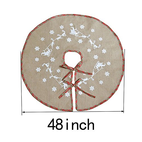 AWTLIFE CHRISTMAS TREE SKIRT 48" ROUND SNOWFLAKE SANTA CLAUS CHRISTMAS HOLIDAY BURLAP TREE SKIRT, RED AND GREEN PLAID